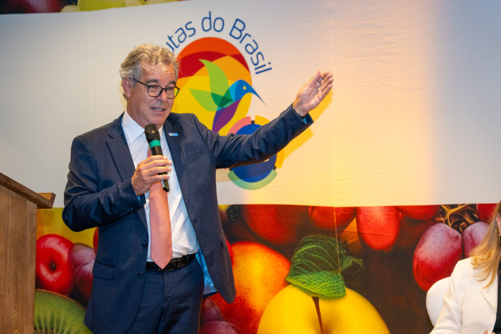 O presidente da ApexBrasil, Jorge Viana, enfatizou o avanço expressivo das exportações de frutas brasileiras, que saltaram de aproximadamente 900 milhões de dólares para US$ 1,2 bilhão, atingindo recordes. Em sua fala, ele reforçou o papel que o selo terá na imagem internacional do país.